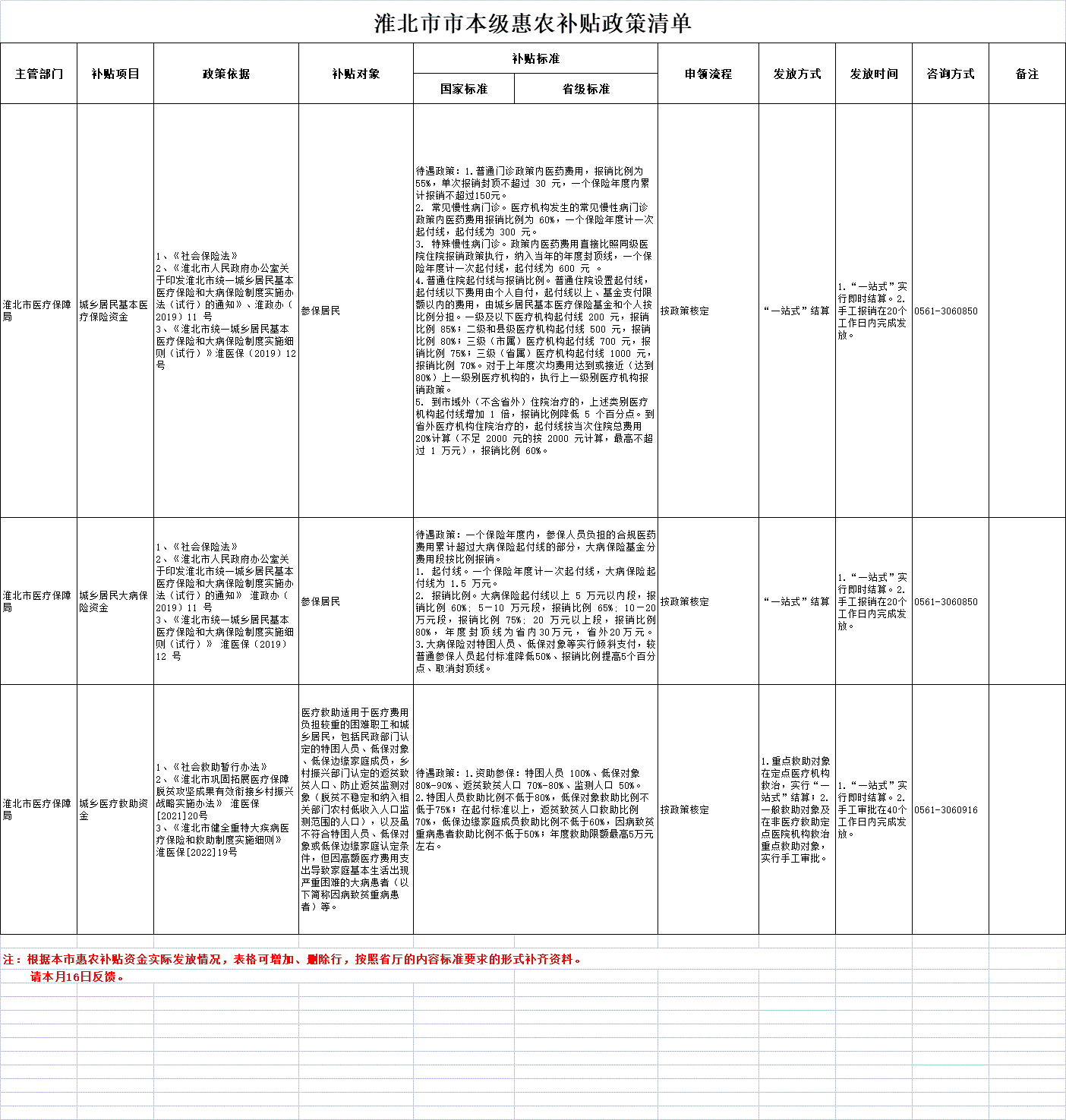 淮北市市本级惠农补贴政策清单